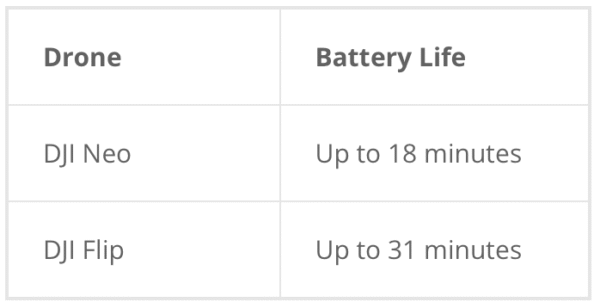 The Flip wins this one. That extra time in the air makes a big difference, especially when you’re still trying to learn how to use the drone. Luckily, both drones offer a Fly More Combo option that gives you extra batteries and a charging hub.