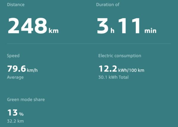 As it happened, both spots had EV chargers however, I was asked for a lift and once I charged to 100% after the first meeting, it involved making several short trips of about 5km each. Bear in mind, this was a of starting and stopping/parking, which impacted my final range for Monday morning.